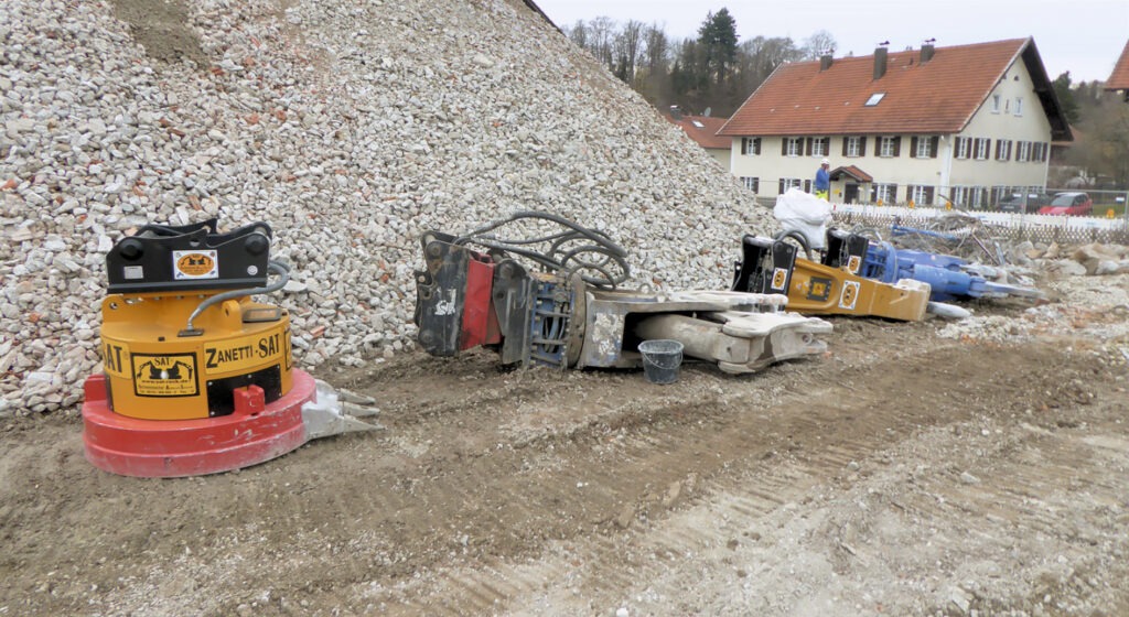 Dabei wurde Michael Strobl, Geschäftsführer der Firma Strobl Straßen- und Tiefbau aus Frieding, von der SAT Schwienbacher Abbruchtechnik kompetent unterstützt. So kamen auf dieser Baustelle unter anderem der Zanetti-SAT-Hydraulikmagnet HM22/35 AZ, ein Trevi-Pulverisierer FR 20RD, der Indeco-Hydraulikhammer UP 3000 sowie eine Multifunktionszange MA 25 und ein Sortiergreifer PMG 15S von Trevi zum Einsatz.