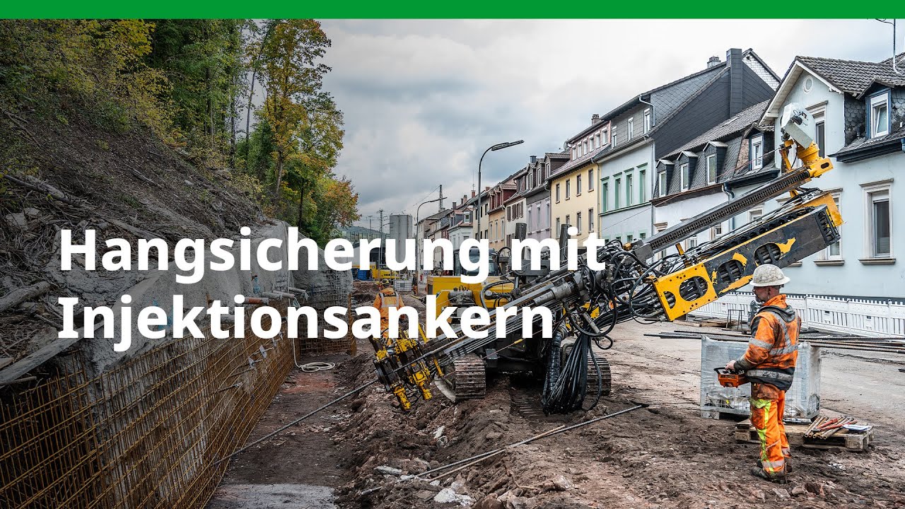 „Mithilfe von Spezialbaggern, die steile Böschungen bewältigen können, haben wir zunächst große Teile des angrenzenden alten Bahndamms abgetragen und zurückgebaut“, erklärt Sebastian Otto, Projektleiter der Spesa. Um den verbleibenden Hang dauerhaft zu stabilisieren, brachten die Experten insgesamt 300 Verpressanker mit einer Länge von 7 bis 8 m in die Wand ein. Im Anschluss verfüllten sie die Anker mit einer Zementsuspension und verstärkten sie zusätzlich mit Bewehrungsmatten.