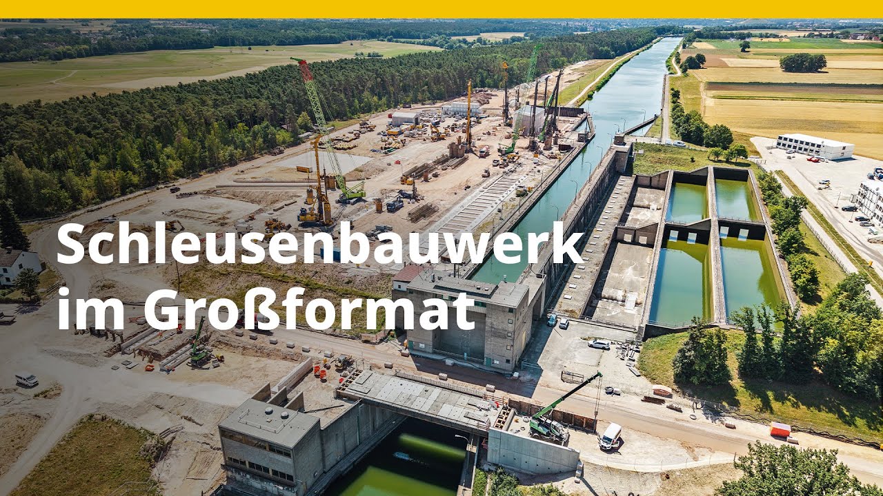 447 Mio. Euro Netto-Auftragsvolumen, acht Jahre Gesamtbauzeit: Im Süden der mittelfränkischen Stadt Erlangen läuft eine der bedeutendsten Infrastrukturmaßnahmen im gesamten deutschen Binnenwasserbau: der Ersatzneubau der Schleuse Kriegenbrunn. Er soll den Schiffsverkehr auf dem Main-Donau-Kanal für kommende Generationen sichern. Bauer Spezialtiefbau ist mit den ARGE-Partnern Züblin Spezialtiefbau und Ed. Züblin u.a. für die Herstellung der Baugrubenumschließung verantwortlich – ein Vorhaben, das nicht nur in seiner Dimension, sondern auch in seiner technischen Komplexität beeindruckt.