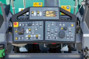 Außerdem hat Vögele das Bediensystem verbessert: Die neue Fahrerbedienkonsole lässt sich wie bisher horizontal versetzen. Zusätzlich kann jetzt auch ihr Winkel in vier Stufen verstellt und damit ergonomisch an die Größe der Bediener angepasst werden. Das neue Bedienkonzept ErgoBasic 5 folgt der Bedienlogik der größeren Maschinen, wurde jedoch speziell auf den Mini-Fertiger abgestimmt. Erstmals integriert die Fahrerbedienkonsole ein Display, über das die Bediener die Betriebsdaten der Maschine einsehen können. Außerdem hat Vögele die Bedienung der Nivellierautomatik Auto Grade Basic vollständig in die Bohlenbedienkonsolen integriert. Damit können Bohlen-Bediener den Mini-Fertiger jetzt wie die großen Fertiger kompakt über eine Konsole steuern. Ein neues Ablagesystem mit Werkzeug- und Getränkehalter, Kleiderhaken und 24-Volt-Steckdose für mobile Endgeräte sollen zusätzlich für Ordnung und mehr Komfort sorgen.