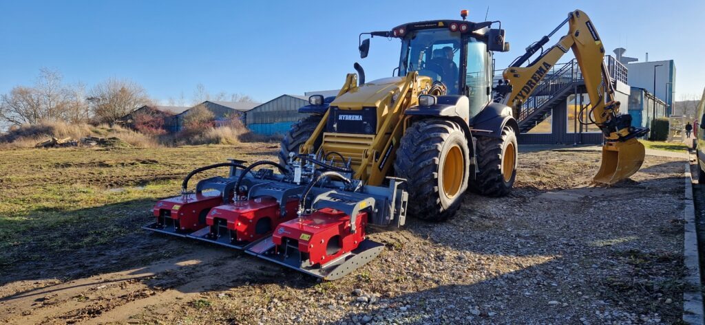 Hydrema hat auf einer Messe in Ingolstadt erstmals einen Baggerlader der 900G-Serie mit einem Plattenverdichter der Firma RSV Rotator Systems aus Weyarn bei München vorgestellt. „Der Gedanke bei dieser Ausrüstung ist ein schlüssiger Arbeitsprozess mit nur einer Maschine“, sagt Deutschland-Vertriebsleiter Martin Werthenbach. Beispielsweise, um Gräben etwa für gezogene Leitungen wieder zu schließen und im gleichen Arbeitsprozess mit derselben Maschine den Boden auf dem geschlossenen Graben zu verdichten. Oder wenn unwegsames Gelände begeh- und befahrbar gemacht werden soll.