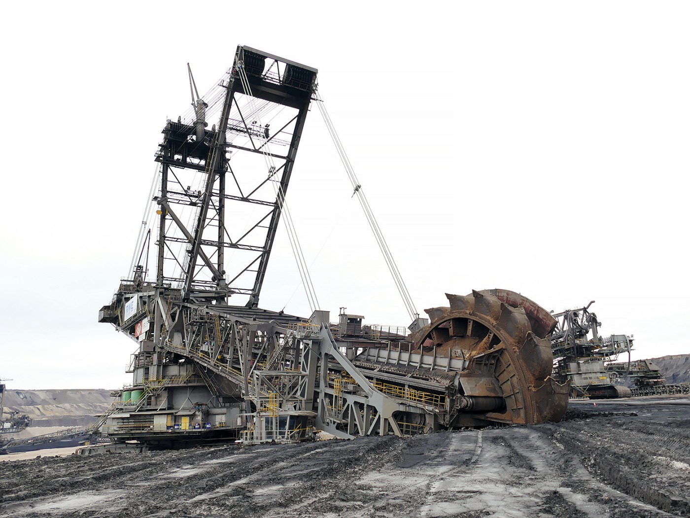 Zum Schluss der Tour geht es noch zum Bagger 285, Inbetriebnahme 1976, Einsatzgewicht 13.000 t, mit einer nominalen Förderleistung von 200.000 m³ pro Tag. Es ist eine fast surreale Szenerie, wenn sich die gigantische Maschine vergleichsweise geräuschlos durchs Erdreich fräst. Friedhelm Maaß hat dazu noch einen Superlativ parat: Ein vergleichbares Gerät habe unter optimalen Bedingungen schon einmal 400.000 feste Kubikmeter in 24 Stunden bewegt, ein absoluter Rekordwert.